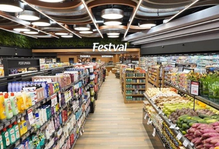 A loja possui 5,015 m² de área de vendas e 29 checkouts